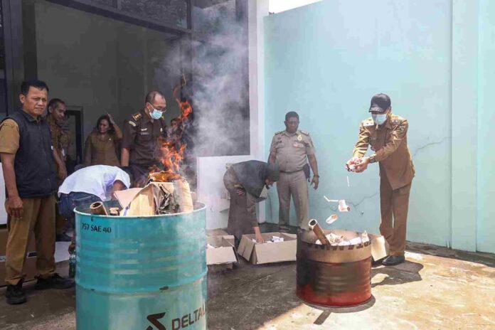MADUTV, KEDIRI – Pemerintah Kota Kediri melalui Dinas Perdagangan dan Perindustrian melaksanakan pemusnahan barang hasil pelatihan peningkatan sumber daya manusia (SDM) Industri Hasil Tembakau (IHT) Tahun 2025 yang bersumber dari Dana Bagi Hasil Cukai Hasil Tembakau (DBHCHT), Senin (16/3). Kegiatan ini merupakan bagian dari upaya menjaga tertib administrasi serta mencegah potensi penyalahgunaan hasil produksi yang dihasilkan selama proses pelatihan.