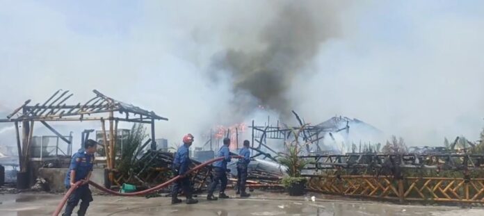 KARAWANG BARAT – Keberuntungan menyertai saat terjadi kebakaran di Rumah Makan Saung Kabogoh yang berlokasi di Jalan Siliwangi, depan Pemda Dua, Dusun Nagasri, Desa Nagasi, Kecamatan Karawang Barat. Kejadian yang diduga akibat konsleting listrik ini berhasil diatasi oleh petugas pemadam kebakaran, tanpa mengakibatkan korban jiwa.