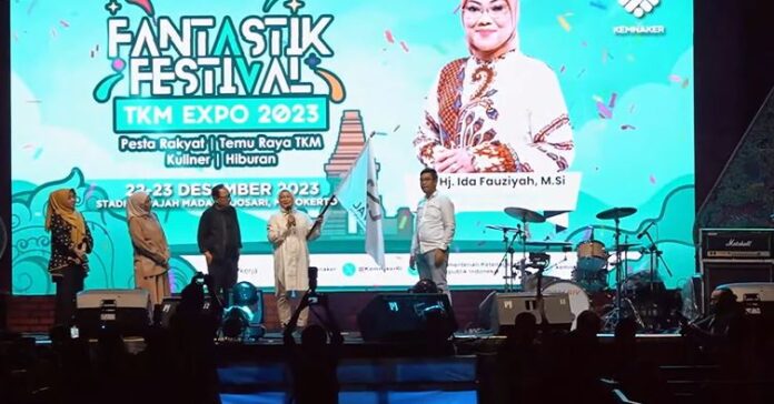 MOJOKERTO, JAWA TIMUR β Kementerian Ketenagakerjaan (Kemnaker) menggelar TKM Expo: Fantastik Festival di GOR Gajah Mada, Mojosari, Kota Mojokerto, Jawa Timur pada 22-23 Desember 2023 lalu. Acara ini tidak hanya menjadi wadah bagi para Tenaga Kerja Mandiri (TKM) di wilayah Mojokerto, tetapi juga sebagai bentuk dukungan terhadap pelaku Usaha Mikro Kecil dan Menengah (UMKM).