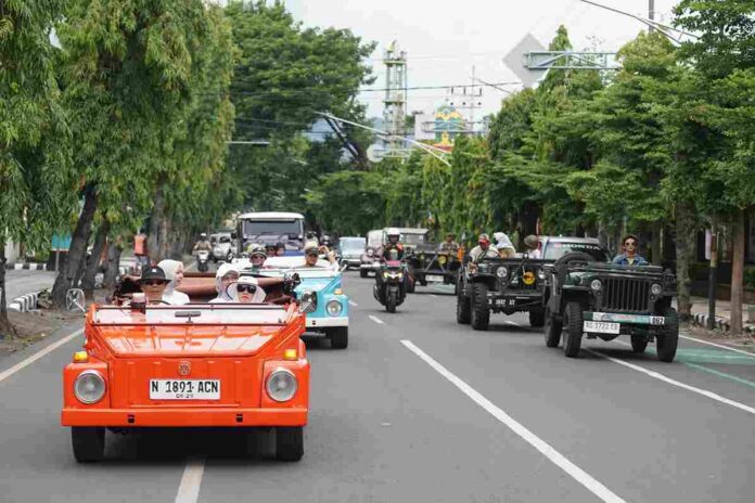 MADUTV, KEDIRI – Nuansa kebersamaan dan semangat pelestarian sejarah mewarnai Kota Kediri, saat Wali Kota Kediri Vinanda Prameswati turut ambil bagian dalam Rally Wisata Mobil Kuno yang digelar oleh Perkumpulan Penggemar Mobil Kuno Indonesia (PPMKI) Pengurus Provinsi Jawa Timur Koordinator Wilayah Kediri, Minggu (18/1/2026). Mengambil start dari kawasan Goa Selomangleng, puluhan mobil klasik menyusuri berbagai sudut Kota Kediri sebagai bagian dari upaya memperkenalkan potensi wisata sekaligus merawat warisan otomotif bersejarah.