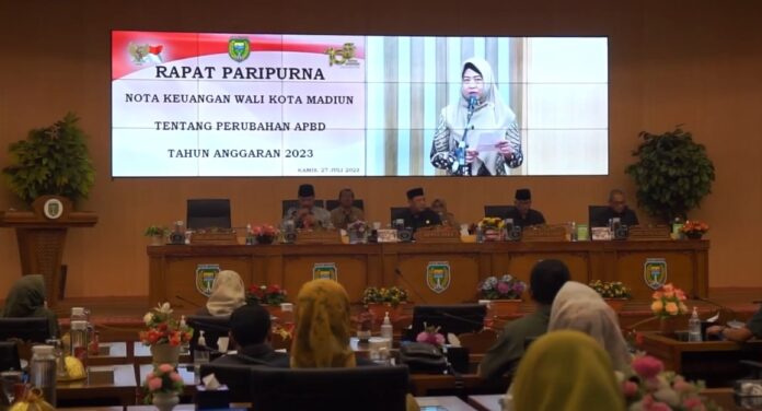 Madiun – Suasana penuh semangat menghiasi Rapat Paripurna yang digelar di Kota Madiun pada hari ini. Wali Kota, Bapak [Nama Wali Kota], dengan penuh keyakinan, menyampaikan laporan keuangan yang berisi nota keuangan sebanyak 23 halaman yang telah disusun bersama Pemerintah Kota Madiun. Dalam laporannya, Wali Kota menyentuh berbagai hal penting terkait keuangan daerah, termasuk sisa anggaran tahun 2022, rencana belanja dalam Perubahan Anggaran Keuangan (PAK), hingga estimasi Pendapatan Asli Daerah (PAD) untuk tahun 2023.