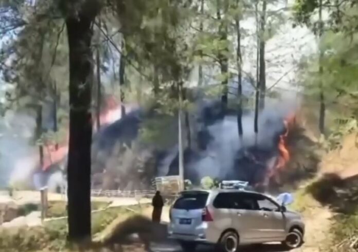 Gowa, Sulawesi Selatan – Kebakaran lahan melanda kawasan Hutan Pinus Malino, Kabupaten Gowa, Sulawesi Selatan. Petugas Dinas Penanggulangan Kebakaran dan Penyelamatan (Damkar) beserta warga setempat telah bersatu hati dan berupaya keras untuk memadamkan api yang melahap lahan ini.