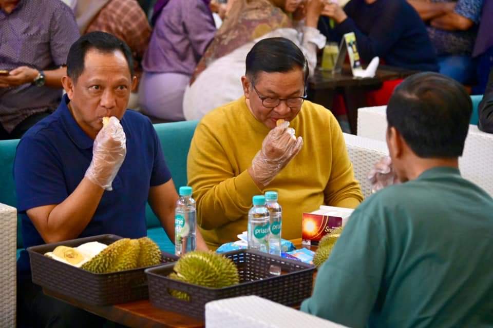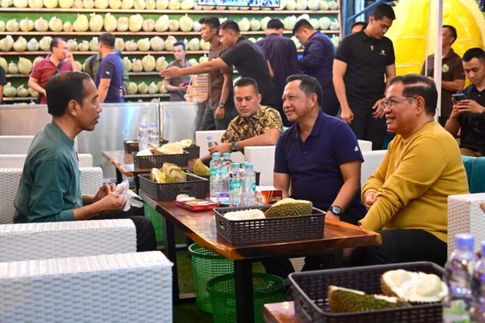 Sebagai bentuk perayaan atas kemenangan timnas Indonesia, Presiden mengajak seluruh rombongan yang hadir dalam kunjungan kerjanya untuk menikmati makan durian bersama