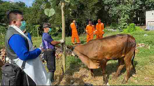 “Dari hasil temuan ini, langsung kami lakukan edukasi dan kita bawa sapinya kita obati dan kita harap dibawa pulang dulu diobati dulu jangan dibawa ke pasar jadi agar tidak menular ke yang lain karena ini bisa menular lewat lalat dan nyamuk,” ujarnya.