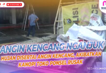 Hujan Disertai Angin Kencang, Akibatkan Kanopi Toko Ponsel Rusak