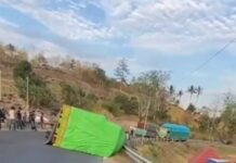 Kelebihan Muatan, Truk Terguling di Tikungan Nona-Nona