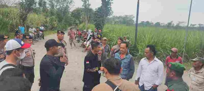 Massa aktivis melakukan penutupan terhadap akses jalan tambang yang berada di Desa Manggis, Kecamatan Ngancar, Kabupaten Kediri.