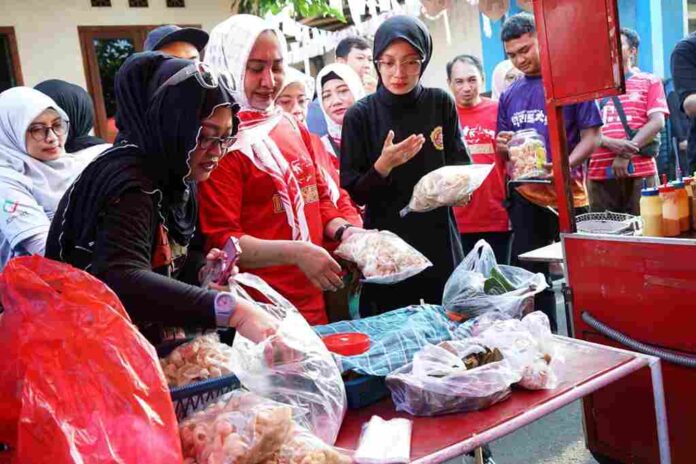 Selain memberangkatkan Jalan Santai, Mbak Wali juga menyempatkan untuk meninjau stand UMKM Kelurahan Ngadirejo. Tak lupa juga untuk melarisi dagangan mereka.