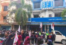 MADUTV, KEDIRI - Mendapatkan Pengaduan dari Salah Satu Nasabah BFI Cabang Kediri terkait penarikan unit Kendaraan Mobil yang dinilai cacat hukum, Puluhan anggota GRIB...
