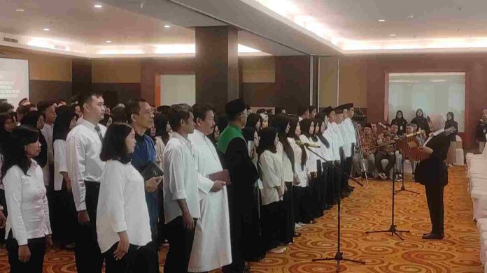 Pelantikan PPS untuk Pemilihan Gubener dan Wakil Gubenur, Bupti dan Wakil Bupati di Pilkada tahun 2024 dari 26 Kecamatan se-Kabupaten Kediri ada sebanyak 1.032 orang.(ef)