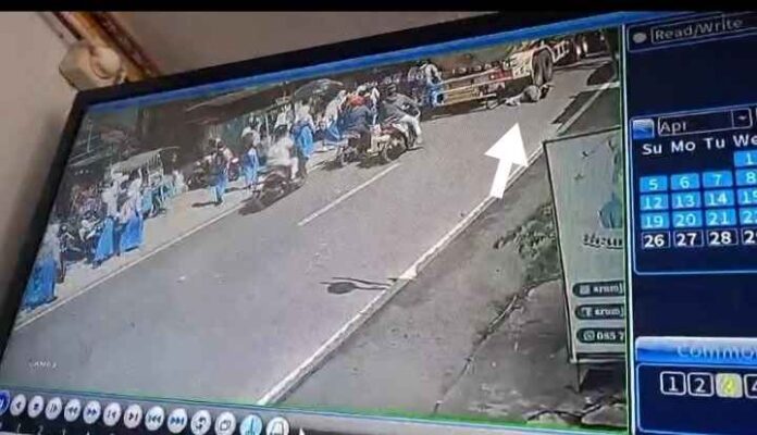 “Kepala korban “pecah”usai dilindas Roda Truk Besar yang saat itu sedang melintas bebarengan lalu lalang keluarnya Siswa Siswi salah satu SMP Negeri dekat lokasi kejadian.Sebelumnya korban berjalan dari arah selatan menuju ke Utara namun tiba tiba dia menjatuhkan tubuhnya dengan posisi tepat kepalanya diantara roda truk yang melaju dari arah Utara keselatan hingga akhirnya kecelakaan tidak dapat terhindarkan dan korban langsung meninggal di lokasi,”ungkap Fahru,Kamis (23/4/2026).