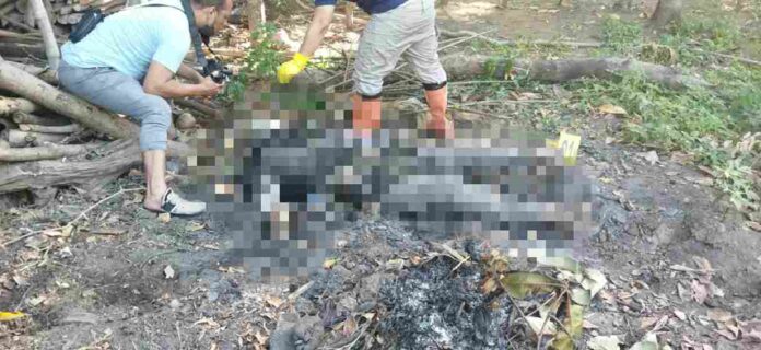 “posisi mayat dikubur di area kebun / dipekarangan Milik Mukhozin dengan posisi terlentang, kepala di sebelah utara dan di timbun tanah yang kaki sebelah kanan dan tangan sebelah kanan terlihat, Adapun ciri mayat Mr X Laki laki, usia diperkirakan 45 tahun, memakai kaos warna hitam lengan Panjang, celana panjang warna Abu abu”, ungkapnya.