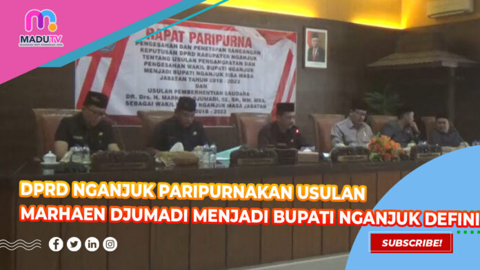 Nganjuk – Setelah turunnya surat pemberhentian Bupati Nganjuk Novi Rahman Hidayat dari Mendagri pada 7 Februari tahun 2023, DPRD Kabupaten Nganjuk gelar rapat paripurna pengusulan dan pengesahan pemberhentian Wakil Bupati Nganjuk Marhaen Djumadi, dan diangkat menjadi Bupati Nganjuk definitif sisa jabatan periode 2018 2023.