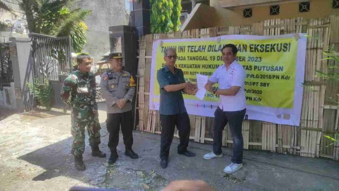 KEDIRI, MADUTV – Adanya permohonan Eksekusi atas Kasus Sengketa Tanah dan Bangunan dari mulaintahun 2018, akhirnya Pengadilan Negeri Kota Kediri, hari Selasa (19/12/2023) mengeksekusi Rumah di Perumahan Mojoroto Indah Blok E-12 RT 043/011 Kelurahan Mojoroto Kota Kediri yang di sengketakan.