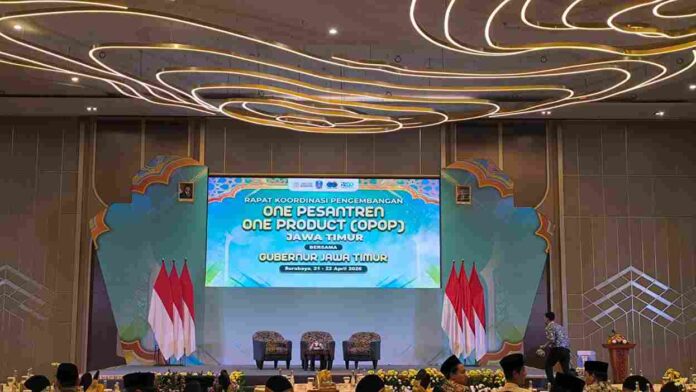 SURABAYA β Pemerintah Provinsi Jawa Timur menggelar Rapat Koordinasi Pengembangan One Pesantren One Product (OPOP) Jawa Timur di Hotel Grand Mirama, Surabaya, Selasa, 22 April 2026.