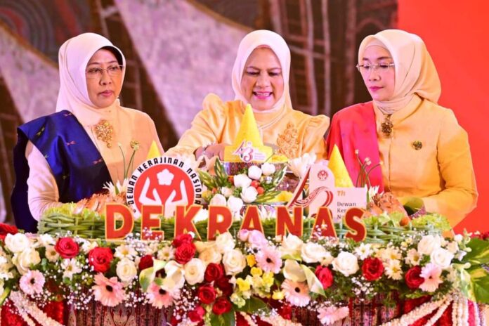 Medan – Ibu Iriana Joko Widodo, Ibu Wury Ma’ruf Amin, dan para anggota Organisasi Aksi Solidaritas Era Kabinet Indonesia Maju (OASE KIM) turut menghadiri peringatan Hari Ulang Tahun (HUT) Dewan Kerajinan Nasional (Dekranas) yang ke-43 pada tahun 2023, sekaligus membuka pelatihan wirausaha baru Dekranas. Acara ini dilaksanakan di Hotel Santika Premiere Dyandra, Kota Medan, Provinsi Sumatra Utara pada Selasa, 16 Mei 2023.