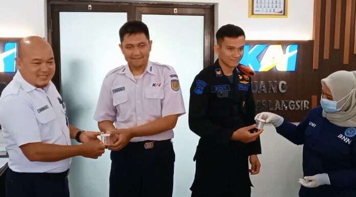 MADIUN, – PT Kereta Api Indonesia (KAI) Daerah Operasi (DAOP) 7 bekerja sama dengan Badan Narkotika Nasional Kabupaten (BNN) Nganjuk menggelar pemeriksaan narkoba terhadap masinis, asisten masinis, dan petugas operasional kereta api di Stasiun Madiun, Jawa Timur.