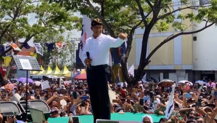 TULUNGAGUNG, MADU TV – Calon Presiden nomor urut 01, Anies Rasyid Baswedan, menggelar kampanye terbuka di Tulungagung, Jawa Timur, pada Jumat (9/2/2024). Kedatangan Anies di Gor Lembupeteng ini berhasil menarik perhatian ribuan orang lintas daerah, termasuk warga dari Tulungagung, Blitar, Kediri, Nganjuk, Trenggalek, hingga Pacitan dan Ponorogo, wilayah eks-Karesidenan Mataraman.