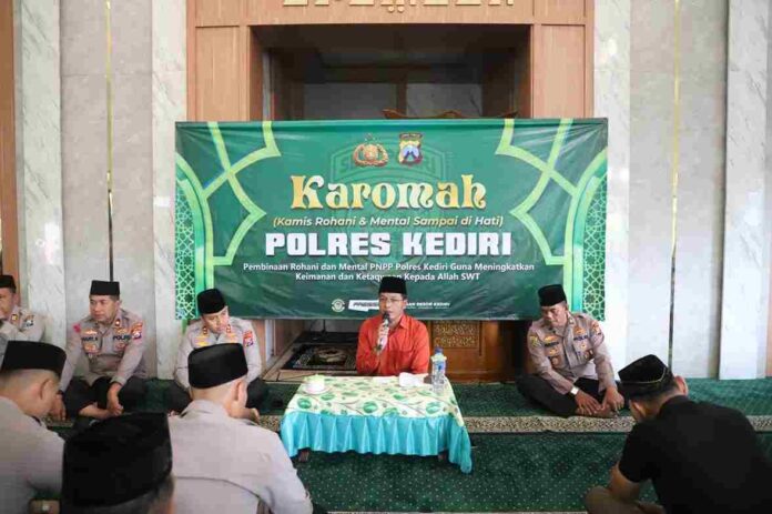Karomah menjadi agenda rutin setiap pekan di Polres Kediri sebagai bagian dari program pembinaan anggota, yang tidak hanya berfokus pada peningkatan kemampuan fisik dan keterampilan, tetapi juga pembinaan spiritual. (Ef)