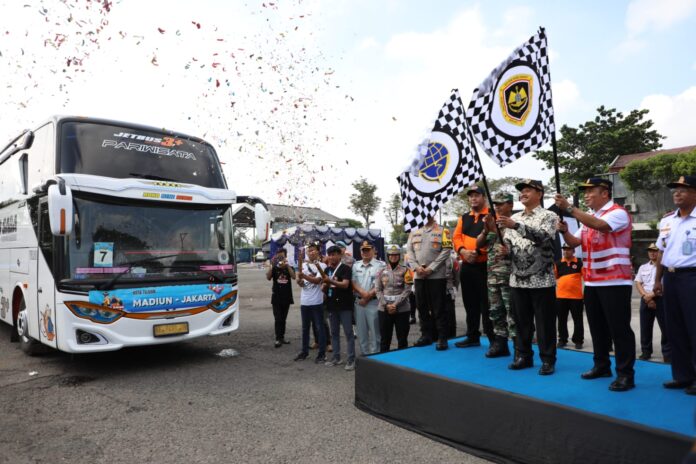 Hari ini, Jumat (28/4), Kementerian Perhubungan (Kemenhub) melalui Direktorat Jenderal Perhubungan Darat secara serentak melepas 126 bus mudik gratis dari 8 terminal yang tersebar di Jawa Timur, Jawa Tengah, D.I. Yogyakarta, dan Jawa Barat. Program ini bertujuan untuk mengurangi kepadatan lalu lintas serta menjaga kelancaran dan keselamatan dalam arus mudik Lebaran tahun ini.
