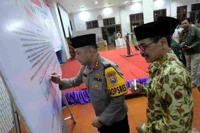 KEDIRI, MADUTV – Sebagai wujud komitmen bersama untuk memastikan keamanan dan kelancaran Pemilu, Kapolres Kediri Kota bersama tokoh agama yang tergabung dalam Paguyuban Antar Umat beragama dan Penganut Kepercayaan (PAUB/PK) Kota kediri, Rabu Malam (24/1) di Ponpes Wali Barokah LDII Kota Kediri