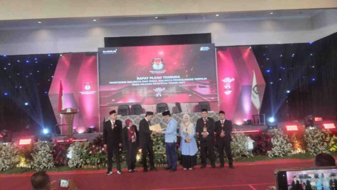PROBOLINGGO, MADUTV – KPU Kota Probolinggo menggelar rapat pleno terbuka untuk menetapkan pasangan terpilih Wali Kota dan Wakil Wali Kota Probolinggo periode 2024-2025. Acara yang berlangsung pada Kamis (6/2/2025) di Gedung Paseban Sena itu dipimpin langsung oleh Ketua KPU Radfan Faisal.