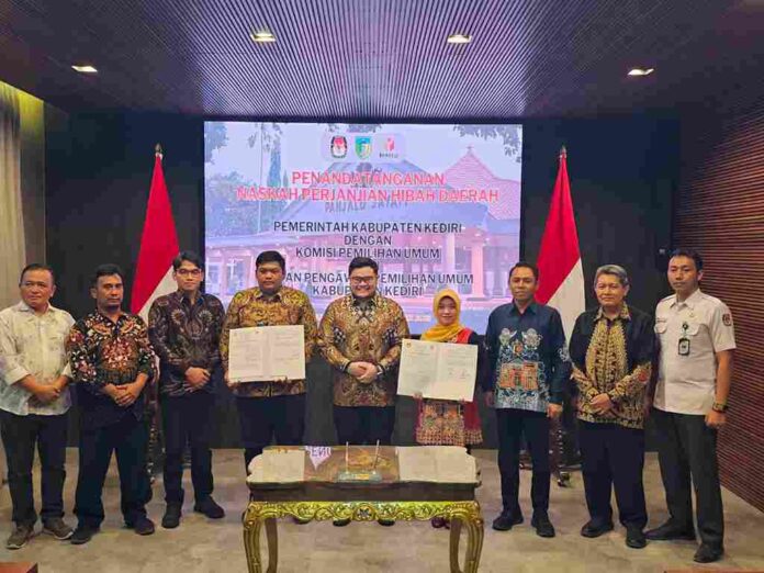 KEDIRI, MADUTV – Wujud Komitmen Suksesi Pemilu Serentak 2024, Pemerintah Kabupaten dan KPU Kabupaten Kediri Tandatangani Naskah Perjanjian Hibah Daerah (NPDH) untuk Pilkada Serentak Tahun 2024.