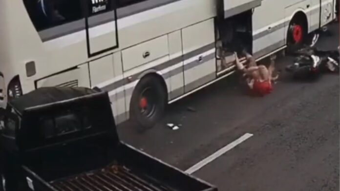 BLITAR, MADU TV – sebuah kejadian laka beruntun terjadi di Blitar, Jawa Timur. Sebuah mobil pick up yang melaju dengan kecepatan kencang,oleng lalu menabrak dua motor dan satu kendaaran bus pariwisata. Dalam kejadian tersebut, satu orang pemotor tewas dan lainya mendapatkan luka. Kejadian laka tersebut juga sempat terekam kamera CCTV jalan raya. Pada rabu (21/02/2024).