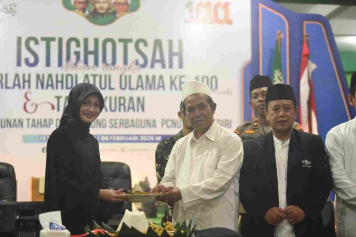 MADUTV, KEDIRI – Wali Kota Kediri Vinanda Prameswati menghadiri Istighotsah dalam rangka Harlah Nahdlatul Ulama ke-100 dan Tasyakuran Pembangunan Tahap 2 Gedung Serbaguna PCNU Kota Kediri. Acara berlangsung, Jumat (06/02/2026). Kegiatan diawala istigotsah yang dipimpin oleh Rais Syuriyah PCNU KH.Abdul Hamid.