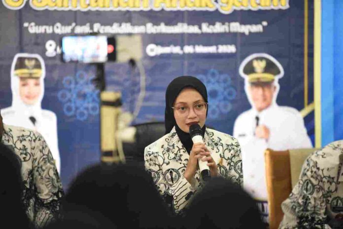 MADUTV, KEDIRI – Peringatan Nuzulul Quran menjadi momentum memperkuat nilai-nilai pendidikan dan keimanan bagi para pendidik di Kota Kediri. Wali Kota Kediri Vinanda Prameswati bersama keluarga besar Persatuan Guru Republik Indonesia (PGRI) Kota Kediri memperingati Nuzulul Quran sekaligus memberikan santunan kepada anak yatim di Masjid Baiturrahman Semampir, Jumat (6/3/2026). Kegiatan bertema “Guru Qurani, Pendidikan Berkualitas Kediri Mapan” ini diikuti sekitar 1.050 perwakilan PGRI Kota Kediri.