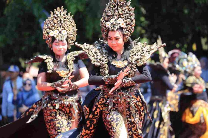 Sebanyak Tiga Puluh Kontingen kesenian menyuguhkan pertunjukan kolaborasi seni dan kreatifitas budaya seninya.ย