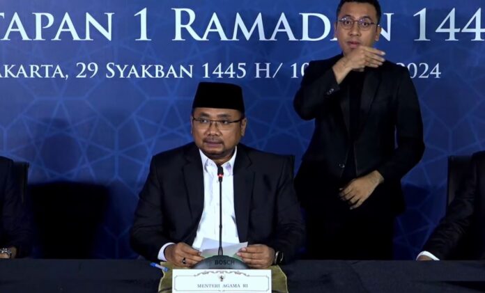 Kementerian Agama menggelar konferensi pers yang menyatakan bahwa Sidang Isbat secara mufakat menetapkan 1 Ramadan 1445 H jatuh pada Selasa, 12 Maret 2024. Menteri Agama Yaqut Cholil Qoumas menyatakan bahwa sidang menyetujui keputusan tersebut karena dua hal.