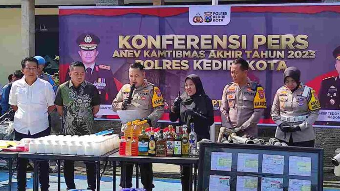Sebanyak 205 kasus kriminalitas berhasil diungkap oleh Polres Kediri Kota pada tahun 2023. Jumlah ini lebih banyak dari tahun sebelumnya 202 kasus.