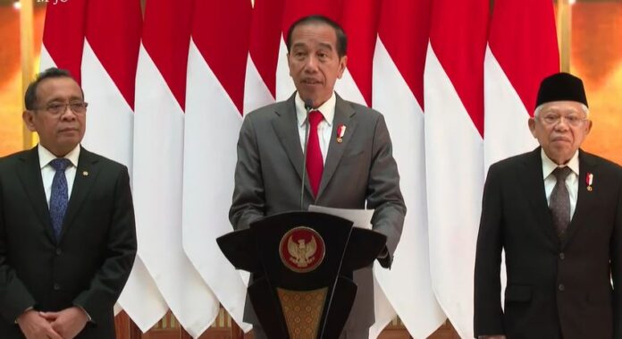 “Turut mendampingi Presiden saat memberikan keterangan pers kepada wartawan yakni Wakil Presiden Ma’ruf Amin, Menteri Sekretaris Negara Pratikno, Panglima TNI Jenderal TNI Agus Subiyanto, Menteri Pekerjaan Umum dan Perumahan Rakyat Basuki Hadimuljono,” kata Presiden Jokowi.