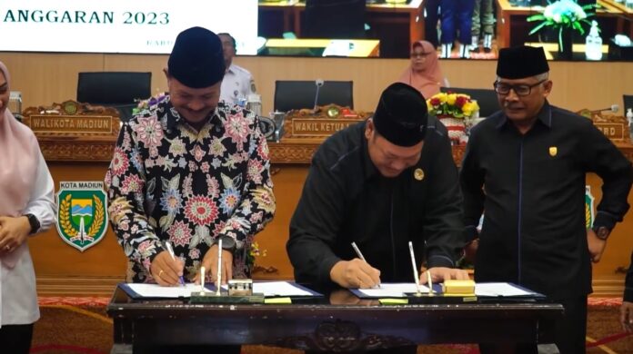 MADIUN – Wali Kota Madiun, Maidi, dengan tegas menyatakan komitmen untuk menempatkan pelayanan dasar dan publik sebagai fokus utama dalam penyusunan kebijakan anggaran. Keputusan ini diambil sebagai hasil dari rapat paripurna penandatanganan nota kesepakatan perubahan kebijakan umum anggaran dan prioritas plafon anggaran sementara (KUA-PPAS) Kota Madiun untuk tahun anggaran 2023.