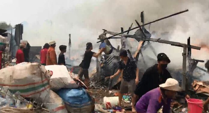 Ditengah kondisi yang semakin kritis, petugas pemadam kebakaran dengan bantuan warga setempat berusaha bahu-membahu memadamkan api. Namun, upaya tersebut tampaknya tidak mudah. Salah satu faktor yang menyebabkan api cepat membesar adalah material yang terbakar di lapak pemulungan. Material tersebut didominasi oleh kayu, pengolahan limbah plastik, serta tumpukan sampah.