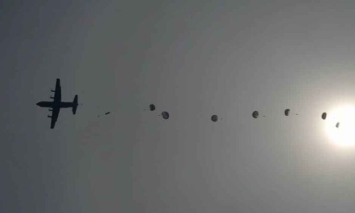 Aksi terjun payung itu dilakukan dalam rangka latihan penyegaran dan taktis.