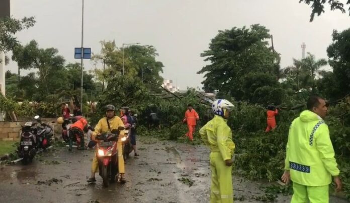 SIDOARJO, MADU TV – Hujan es disertai angin kencang yang melanda Kabupaten Sidoarjo, Jawa Timur, pada Senin sore kemarin, mengakibatkan beberapa pohon tumbang di beberapa titik strategis. Dampaknya, arus lalu lintas di area sekitar Sidoarjo mengalami kemacetan panjang hingga mencapai 6 kilometer.