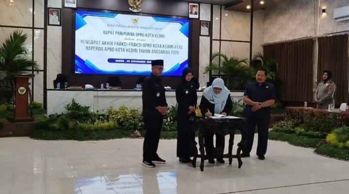 KEDIRI, MADUTV β Rabu (26/11/2025) Rapat Paripurna Pendapat Akhir Fraksi Fraksi DPRD Kota Kediri atas Raperda APBD Kota Kediri Tahun Anggaran 2026 telah menemui kata sepakat setelah melalui beberapa tahapan sebelumnya. Bertempat di Ruang Pertemuan BKPSDM Kota Kediri 7 Fraksi DPRD Kota Kediri menyatakan menerima Raperda APBD Kota Kediri 2026.