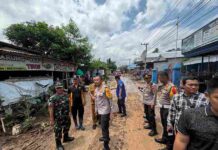 Kolaborasi Polres Kediri Kota Bersama TNI dan Pemkab Tangani Banjir di Desa Tiron