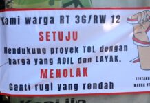 Kediri - Warga di Kelurahan Mojoroto, Kota Kediri, Jawa Timur, mengekspresikan penolakan mereka terhadap tawaran nilai tanah yang rendah dalam proyek pembangunan Jalan Tol...