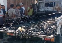 Diduga Alami Hubungan Pendek Arus Listrik Sebuah Mobil Muatan AC Terbakar