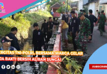 Sinergitas Tni-Polri, Bersama Warga Gelar Kerja Bakti Bersih Aliran Sungai