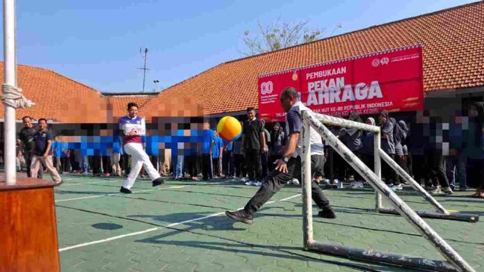 Puncak momen apel terjadi ketika Kalapas Solichin melakukan tendangan bola ke gawang yang dijaga Kasi Binadik Lapas Kediri, mengundang sorak riuh para WBP dan pegawai. Aksi ini menjadi tanda resmi dimulainya Pekan Olahraga Semarak HUT ke-80 RI di lingkungan Lapas Kediri.