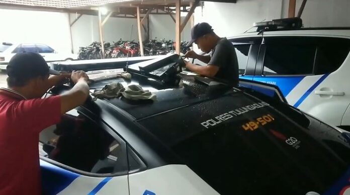 TULUNGAGUNG – Satuan Lalu Lintas (Satlantas) Polres Tulungagung melakukan langkah tegas dengan menutup bagian belakang lampu rotator pada mobil dan motor dengan pemasangan stiker film berketebalan 20 persen. Tindakan ini merupakan respons terhadap instruksi Kepala Korps Lalu Lintas (Kakorlantas) Mabes Polri, sebagai upaya merespons keluhan masyarakat terkait silauan dari lampu rotator.