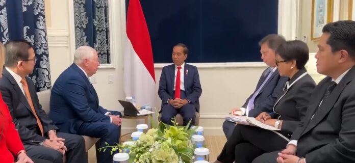 WASHINGTON DC – Presiden Republik Indonesia, Joko Widodo (Jokowi), menerima kunjungan Chairman Freeport McMoRan, Richard Adkerson, pada Senin lalu di Hotel Waldorf Astoria, Washington DC, Amerika Serikat. Pertemuan ini membahas peningkatan investasi Freeport di Indonesia serta perpanjangan izin tambang yang telah mencapai tahap akhir.