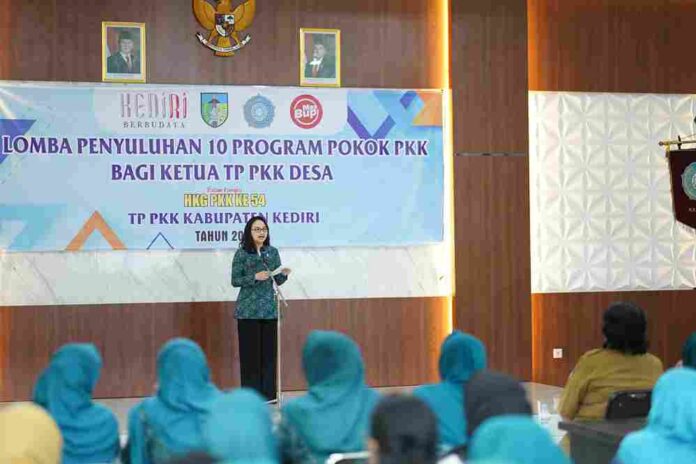 MADUTV, KEDIRI – Ketua Tim Penggerak PKK Kabupaten Kediri Eriani Annisa Hanindhito menggelar lomba penyuluhan 10 Program Pokok PKK bertempat di Ruang Rapat Kantor Dinas Pemberdayaan Masyarakat dan Pemerintahan Desa (DPMPD) komplek Pendopo Panjalu Jayati, Senin (9/2/2026).
